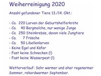 13./14.10.20: Tiere vom Weiher einsammeln vor der Reinigung