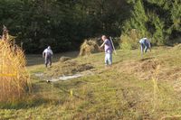 Tiere vom Weiher einsammeln vor der Reinigung.